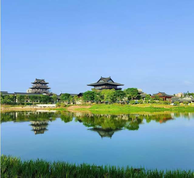 廣州新文化館以“十里紅云一灣水,八橋畫(huà)舫十六亭”為理念,“八橋”“十六亭”等提法跟現(xiàn)實(shí)景觀一一吻合,其建筑群如海珠石般散落在湖邊,薈萃成大小不一的院落,形成庭院與建筑共生,園中有園的優(yōu)美布局。 選取嶺南典型的風(fēng)景元素“山、水、田、塘”貫穿整體設(shè)計(jì),同時(shí)按四季景觀設(shè)景,并結(jié)合嶺南園林布局特色,突出廣州歷史韻味。