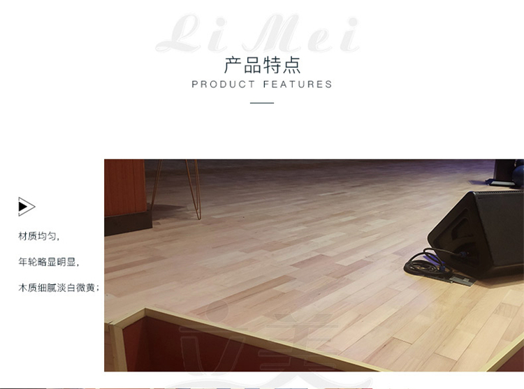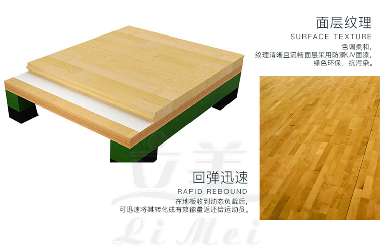 學校舞臺運動木地板在使用過程中,由于舞臺運動木地板表面的紋理比較清晰,無論是柞木,還是楓木地板,在使用過程中,木質(zhì)本身的紋理性,會為舞者帶來良好的觸覺感。二:嚴格的摩擦系數(shù)